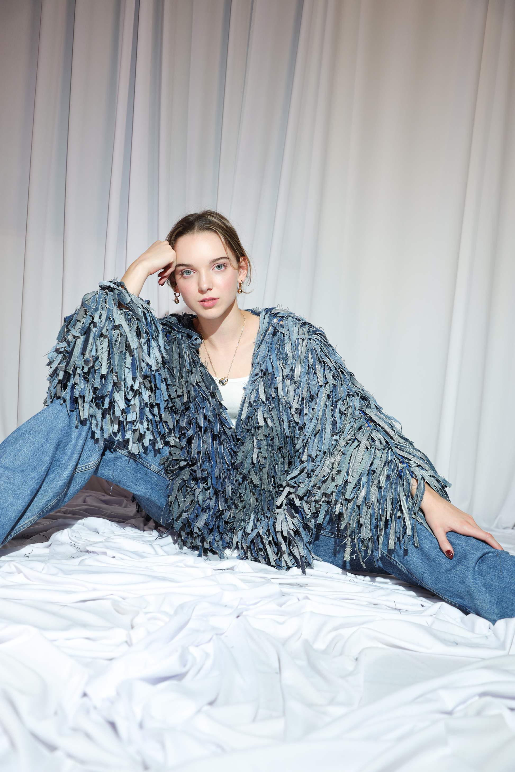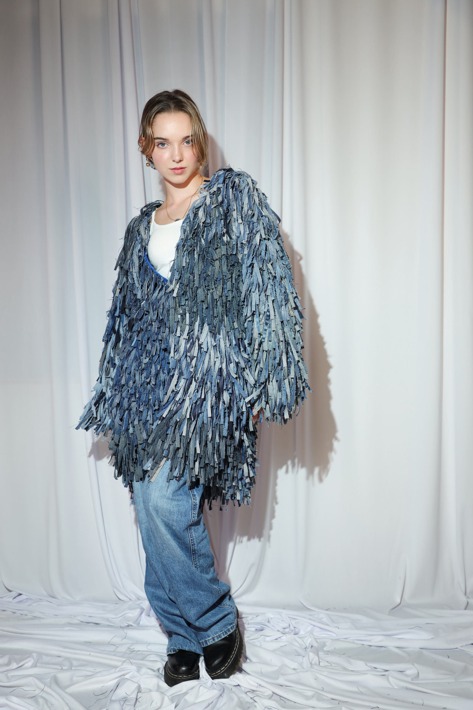 Casaco Garibaldo Fenix 100% algodao, em croche aberto na frente Azul -902 - cod 901 - 80x 50cm